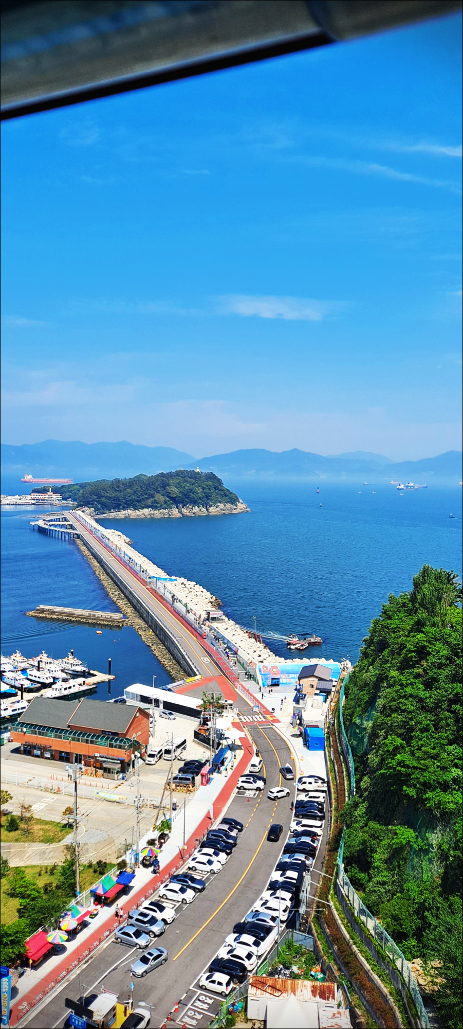 엘레베이터 안에서도 오동도로 들어가는 길과, 오동도가 저 멀리 보이네요.
