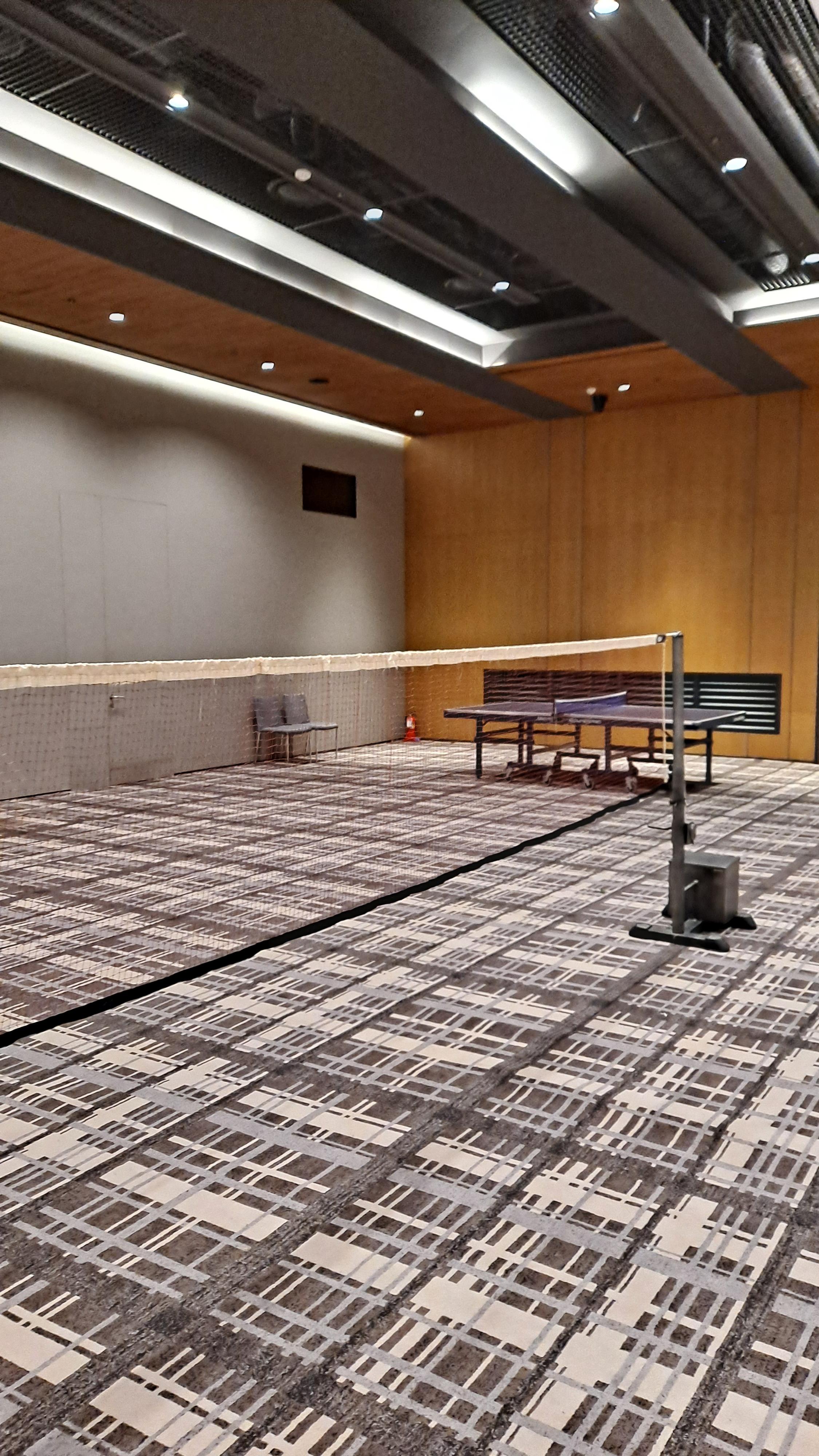 탁구대와 배드민턴이 있는